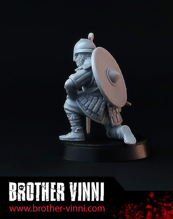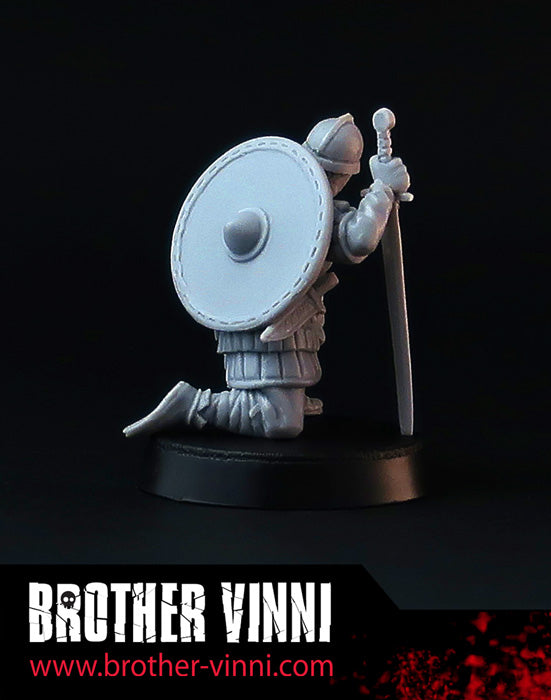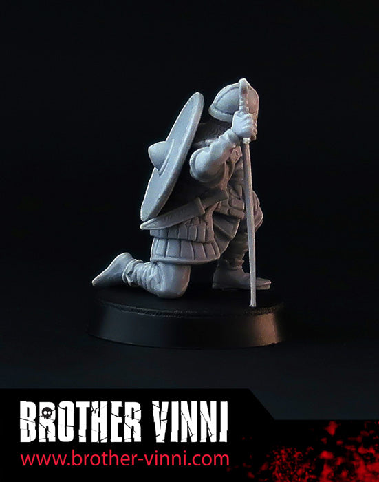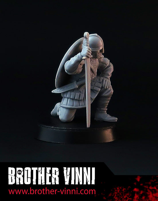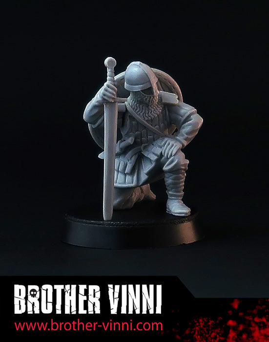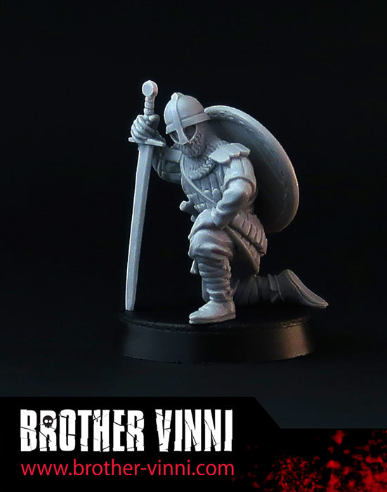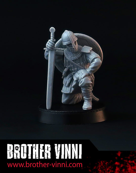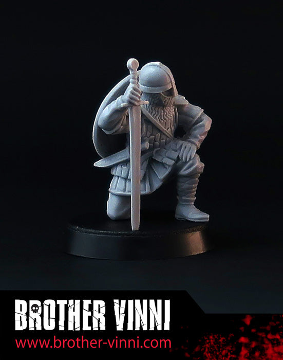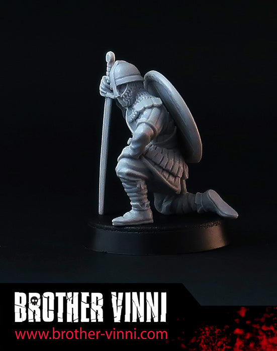 Resting Knight miniature, fatigue marker for SAGA wargame