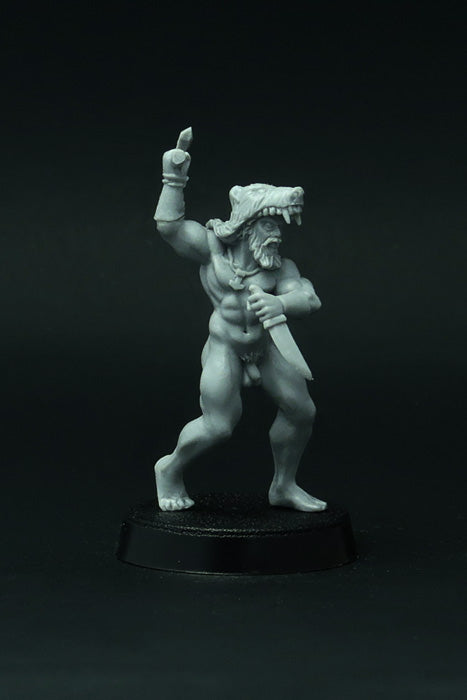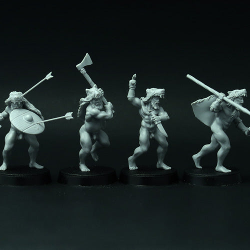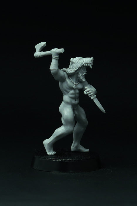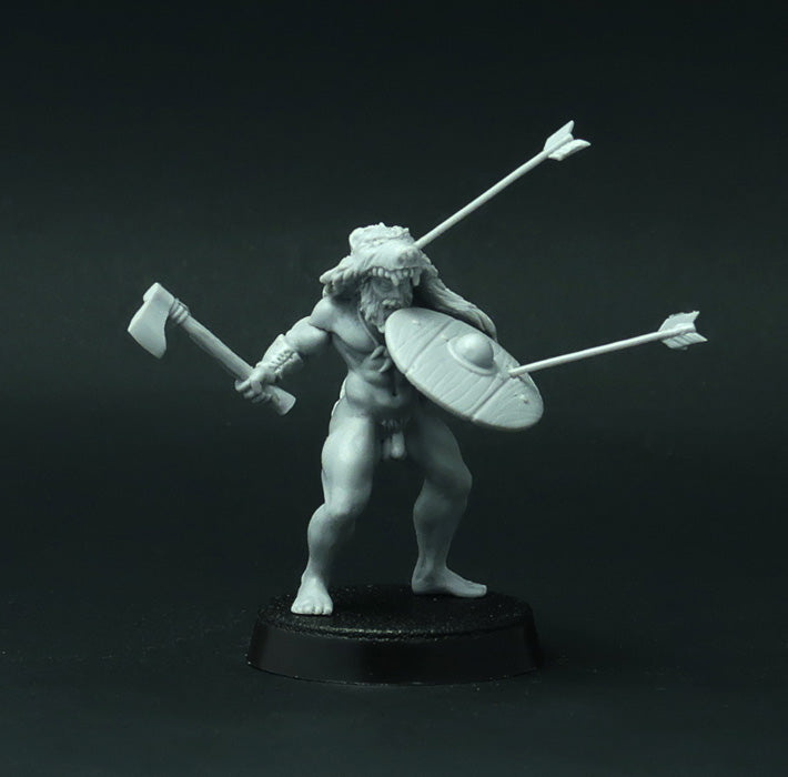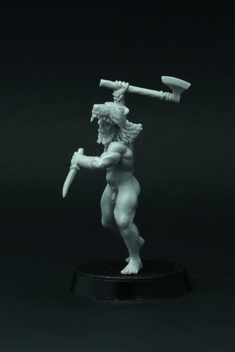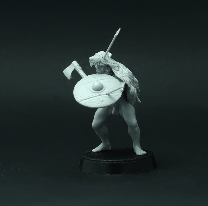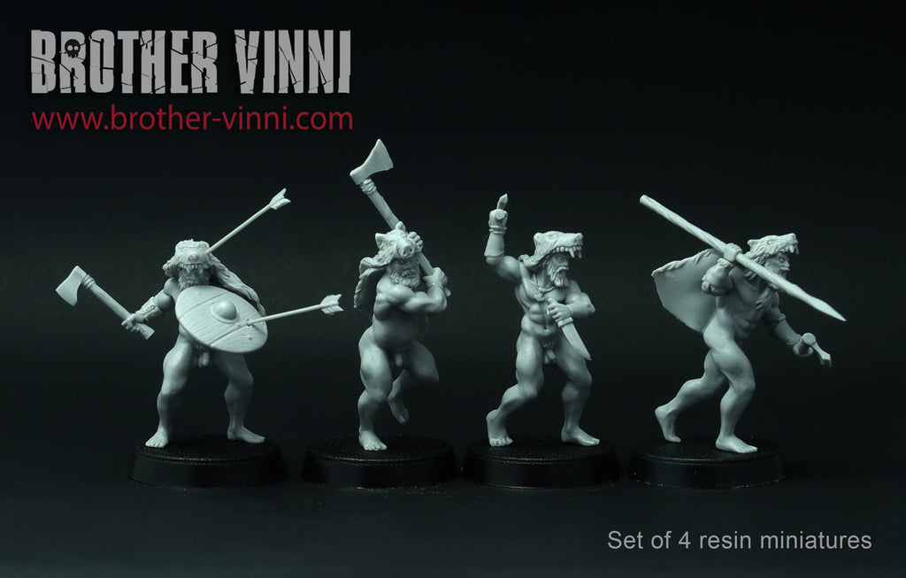 This set of 4 resin miniatures depicts elite German warriors (barbarians) that fight naked, dressed in animal skins only. Very good miniatures for playing SAGA or another historical or fantasy wargame. Miniatures designed and casted by Brother Vinni's studio.
