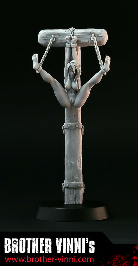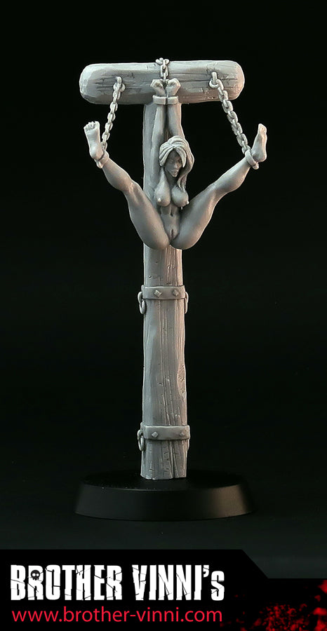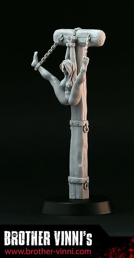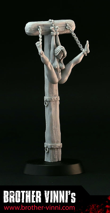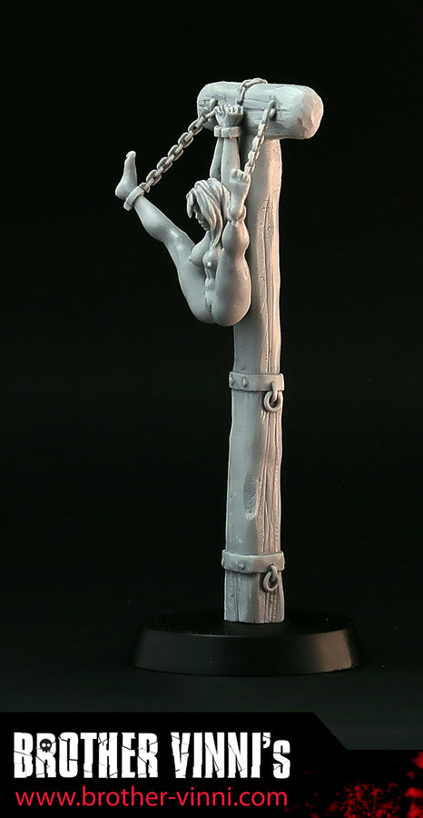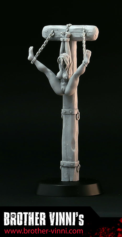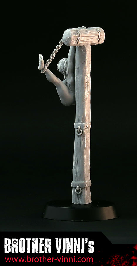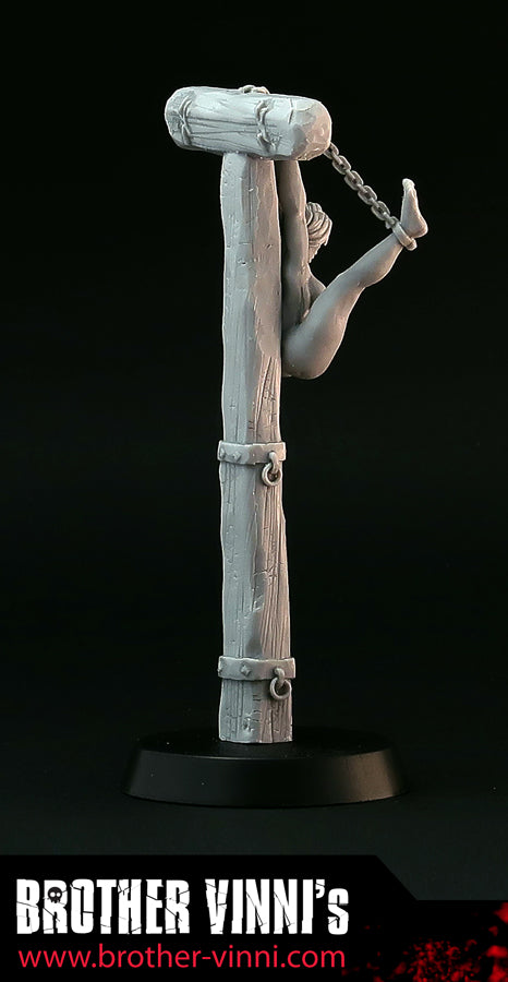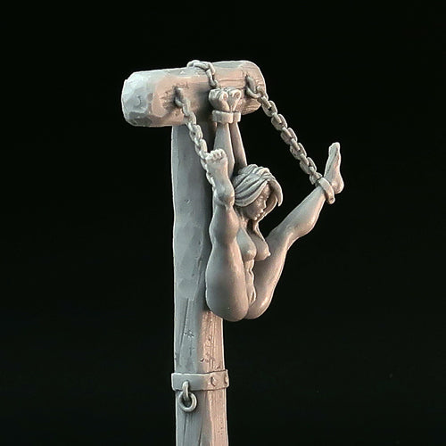 Naked Woman in bondage resin miniature, 28mm miniature, medieval torture device, pillory. Art, sculpture.